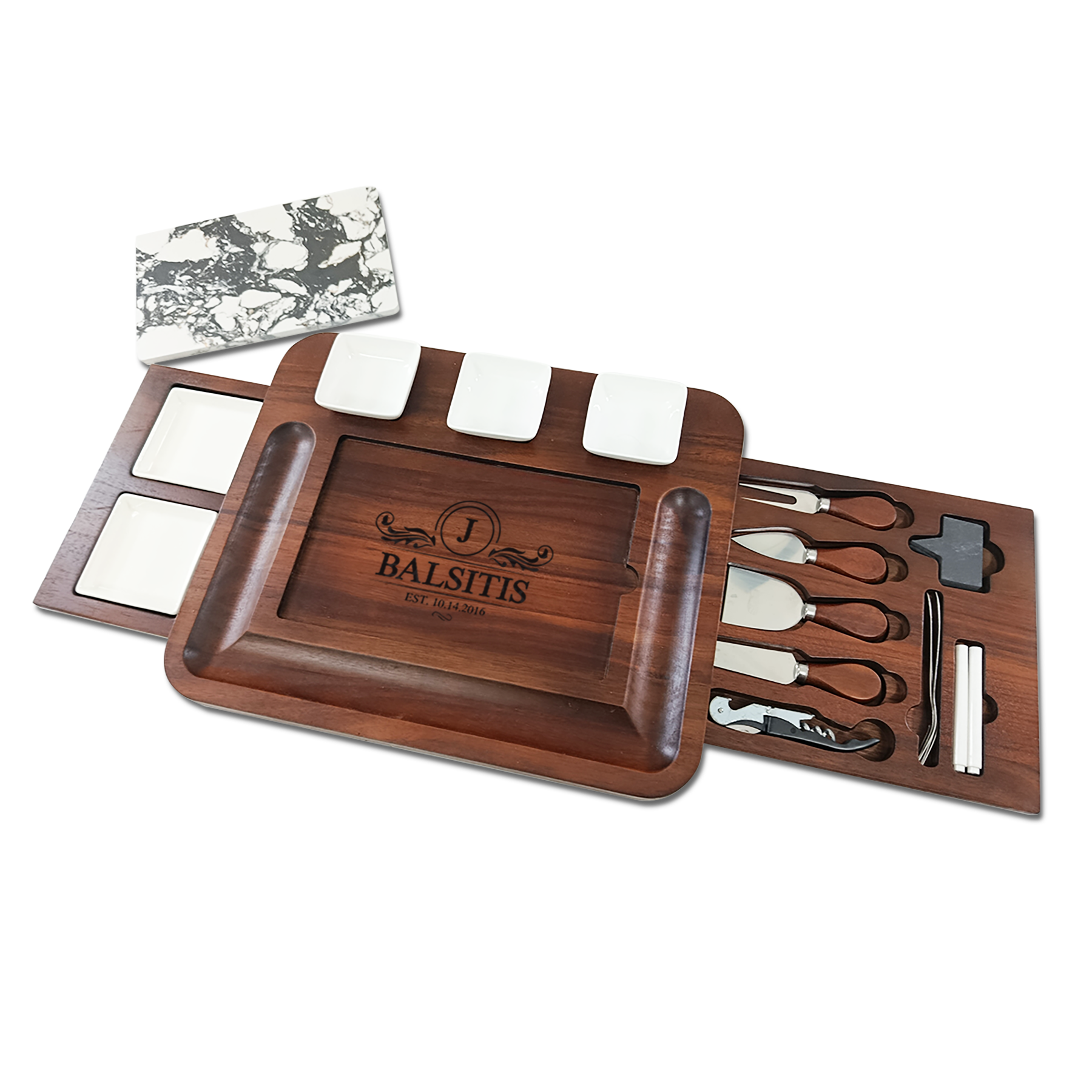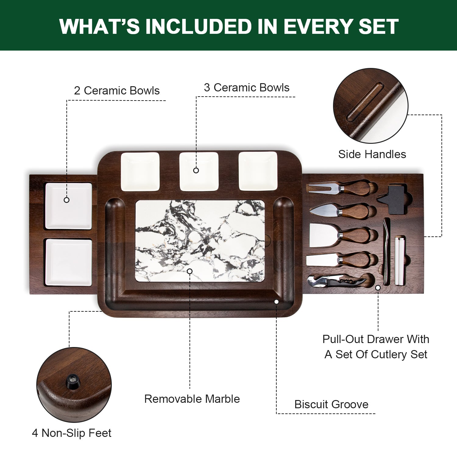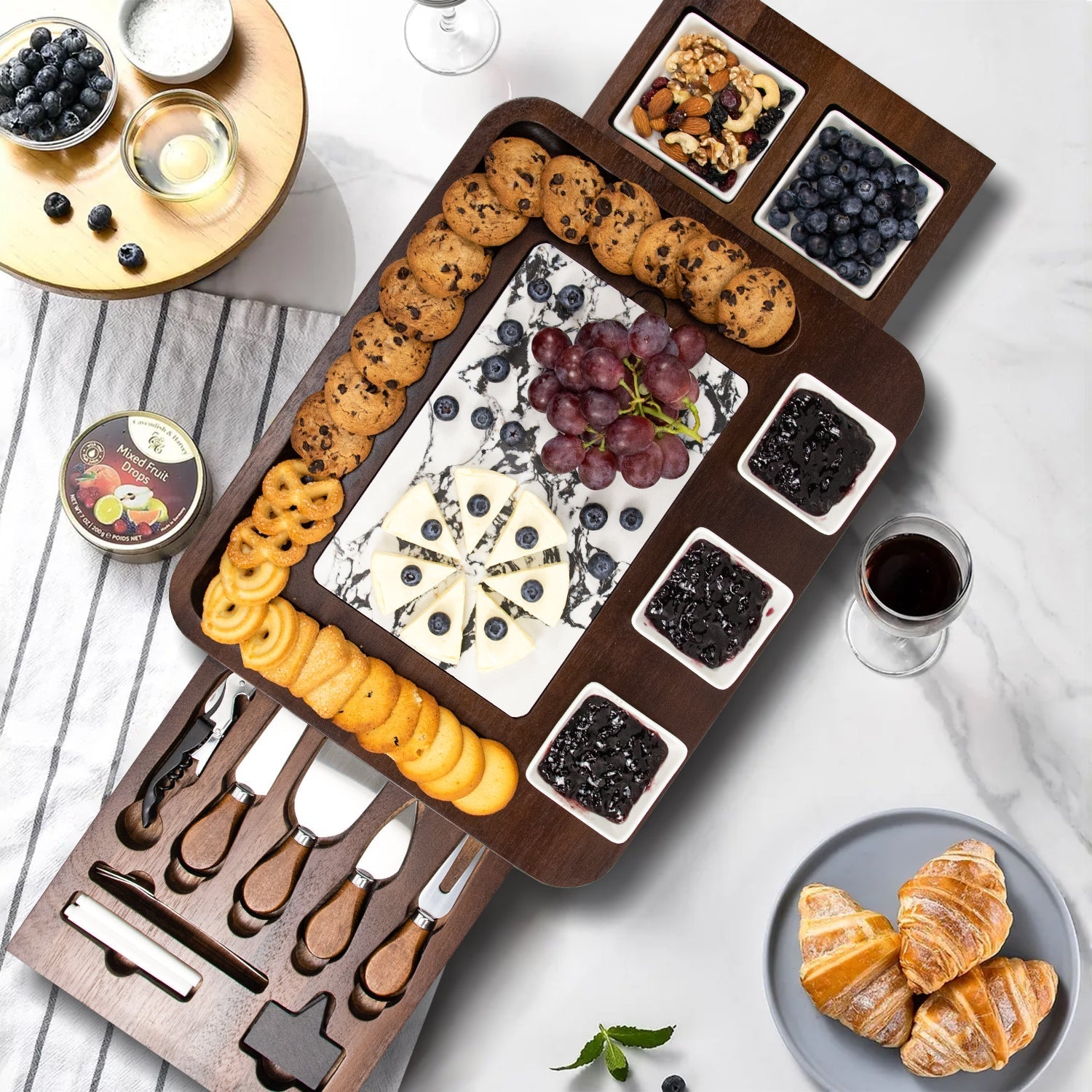 Made from premium acacia wood and featuring a sleek, removable marble tray, this board is designed to make serving effortless and elegant, no matter the occasion. Whether you're hosting Christmas drinks or a summer picnic, this set adapts to your style of entertaining.